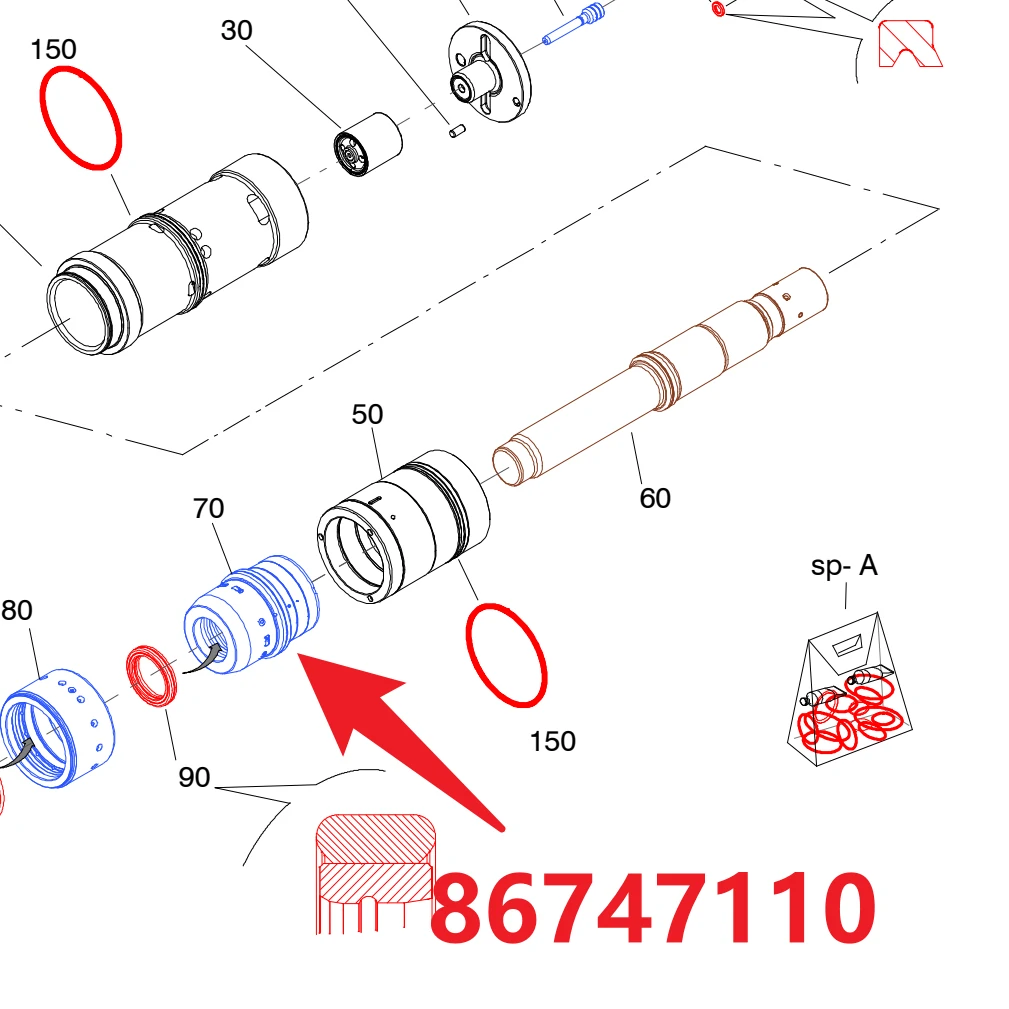 • Replacement condition: Replace based on actual usage (e.g., stop surface wear, seal groove damage, oil leakage, piston jamming)